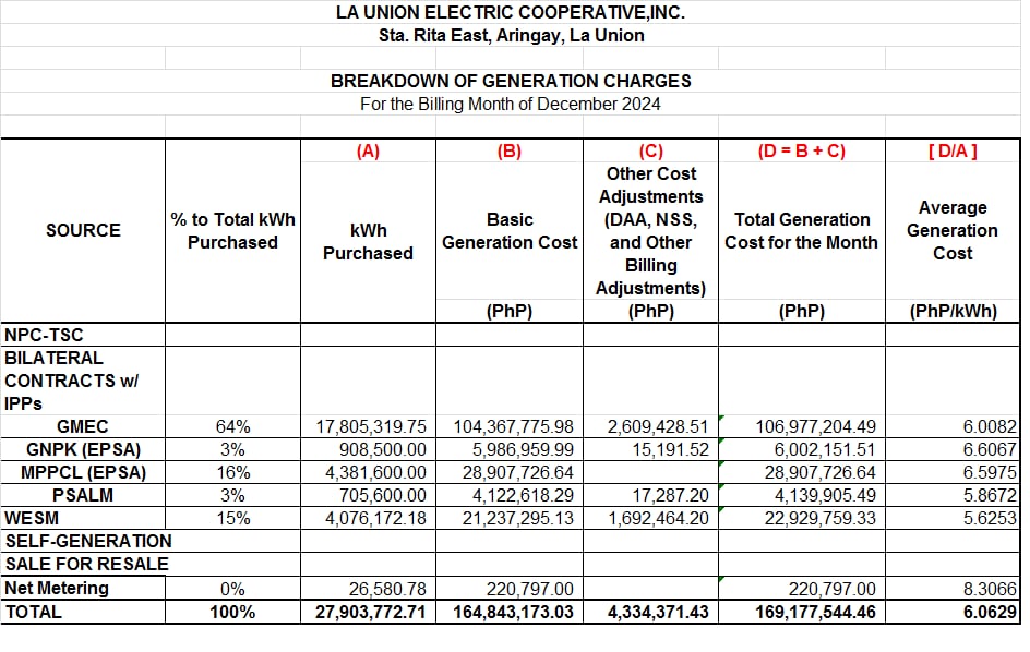 December 2024 Generation Charges
