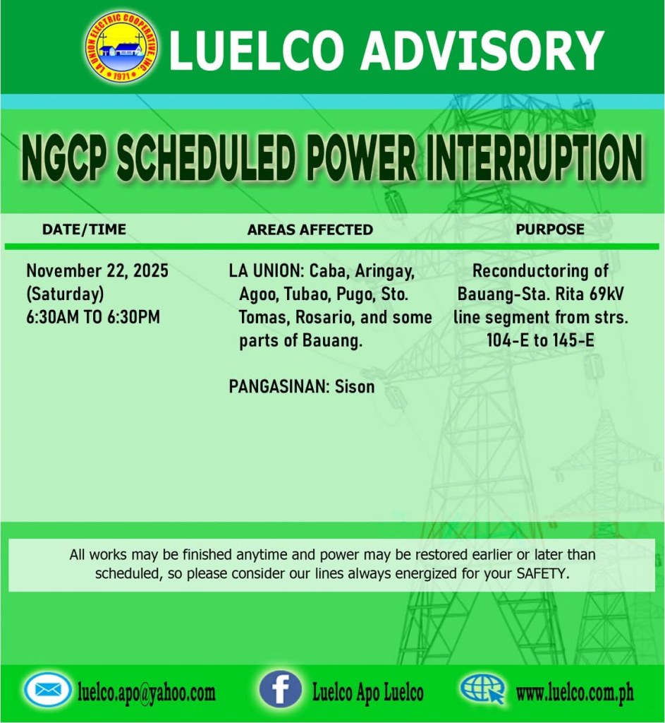 The National Grid Corporation of the Philippines – NGCP is scheduling a power service interruption